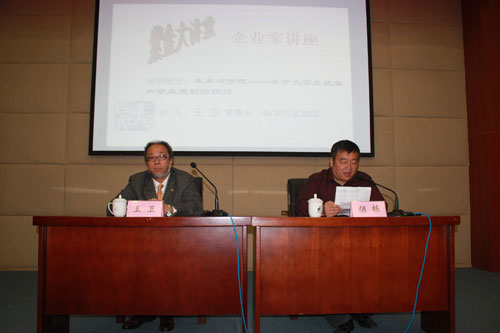 10月15日下午,由教务处主办、地理与生物信息学院承办的南京邮电大学“紫金大讲堂”――企业家讲座第十次活动在仙林校区行政楼一楼报告厅顺利举行。南京巨鲨集团董事长王卫先生应邀莅临“紫金大讲堂”,为同学们带来题为“未来与梦想——关于大学生就业和职业规划的探讨”的精彩讲座。讲座由地理与生物信息学院院长胡栋教授主持。