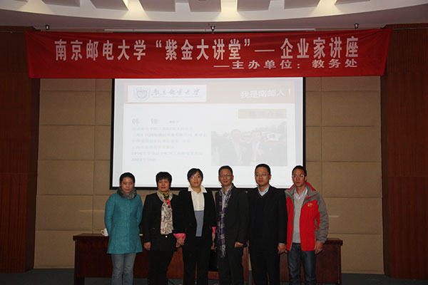 为提高我校学生就业创业的水平,为学生创业提供丰富的经验和有效的指导,由教务处主办、通信与信息工程学院承办的南京邮电大学“紫金大讲堂”――企业家讲座第十四次活动于11月20日下午在仙林校区行政楼一楼报告厅举行。上海汇珏网络通信设备公司董事长韩锋先生应邀作题为“‘ 信念、勇气、奋斗 ’――老南邮人创业经历漫谈及对新南邮人创业的忠告”的精彩讲座。讲座由通信与信息工程学院沈建华副院长主持。