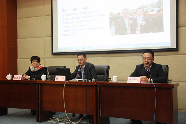 为提高我校学生就业创业的水平,为学生创业提供丰富的经验和有效的指导,由教务处主办、通信与信息工程学院承办的南京邮电大学“紫金大讲堂”――企业家讲座第十四次活动于11月20日下午在仙林校区行政楼一楼报告厅举行。上海汇珏网络通信设备公司董事长韩锋先生应邀作题为“‘ 信念、勇气、奋斗 ’――老南邮人创业经历漫谈及对新南邮人创业的忠告”的精彩讲座。讲座由通信与信息工程学院沈建华副院长主持。
