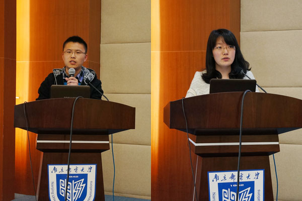 曾获得2012年国家级优秀项目王立(左)和杨京京同学在报告中