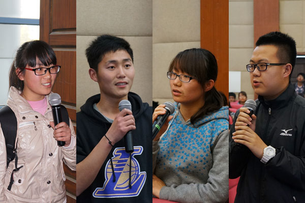 曾主持并获得2012年国家级优秀创新项目的王立、杨京京同学分享了他们参与计划项目的过程和收获。王立同学讲述了参加训练计划的好处以及完成项目过程中的注意事项。杨京京同学从课题的选择、研究过程的注意点、团队合作的重要性、与指导教师如何沟通以及要注意的一些细节分享了她的经验体会。