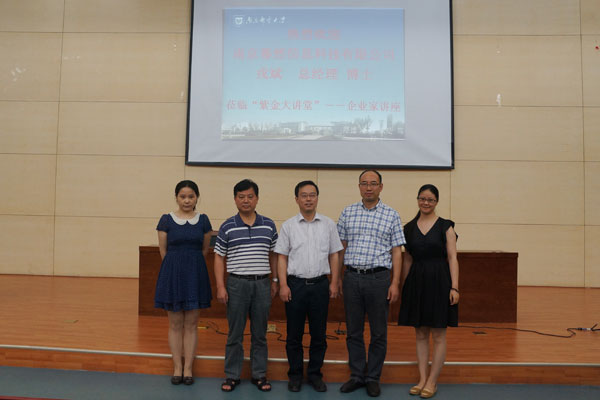 6月12日下午,由教务处主办、计算机学院、软件学院承办的南京邮电大学“紫金大讲堂”――企业家讲座第24次活动在仙林校区图书馆四楼报告厅举行。南京蓦然信息科技有限公司总经理戎斌博士应邀做客“紫金大讲堂”,给同学们带来了题为“大数据创业”的精彩讲座。讲座由计算机学院、软件学院副院长陈丹伟教授主持。
