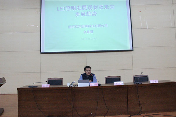 11月28日下午,由教务处主办、光电工程学院承办的南京邮电大学“紫金大讲堂”――企业家讲座第32次活动在仙林校区图书馆四楼报告厅举行。中国传动南京京泽照明科技有限公司余其明副总经理应邀莅临“紫金大讲堂”,作题为“LED照明产业发展现状及其未来趋势”的讲座。讲座由光电工程学院党委尹志丽副书记支持。